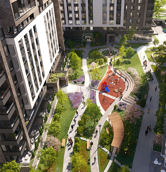 Arhitektura stambenog kompleksa ima moderan pristup, sa čistim formama i prirodnim materijalima, dok upotreba cigle daje simetričnu geometriju i toplinu ambijentu. Kako arhitekta navodi, „zgrade su izgrađene po najvišim standardima kvaliteta, sa ukupno 279 stanova koji mogu da zadovolje potrebe i najzahtevnijih kupaca“.